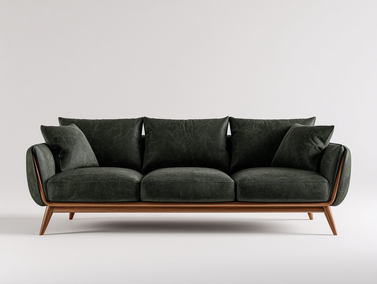 3 Seater Sofas upholstered fabric with wooden frame 210x85x80 cm - dark green-natural wood - modern comfort designAUD 148.20