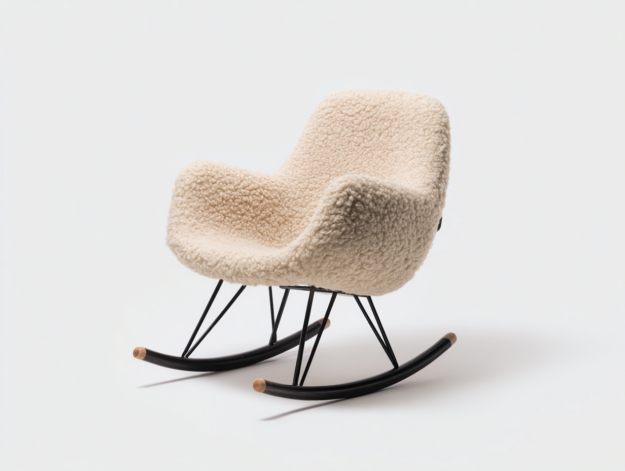 Rocking Chair upholstered boucle fabric with wooden runners 78x88x96 cm - ivory-black wood - modern comfort designAUD 141.36