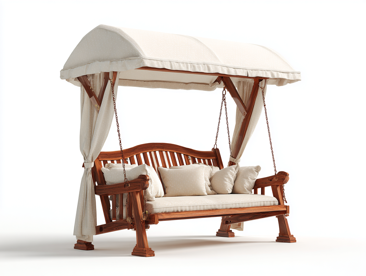 Garden Swing Seat Solid Wood Garden Swing Seat 210x135x195 cm - Natural Wood-White - Classic Outdoor Design